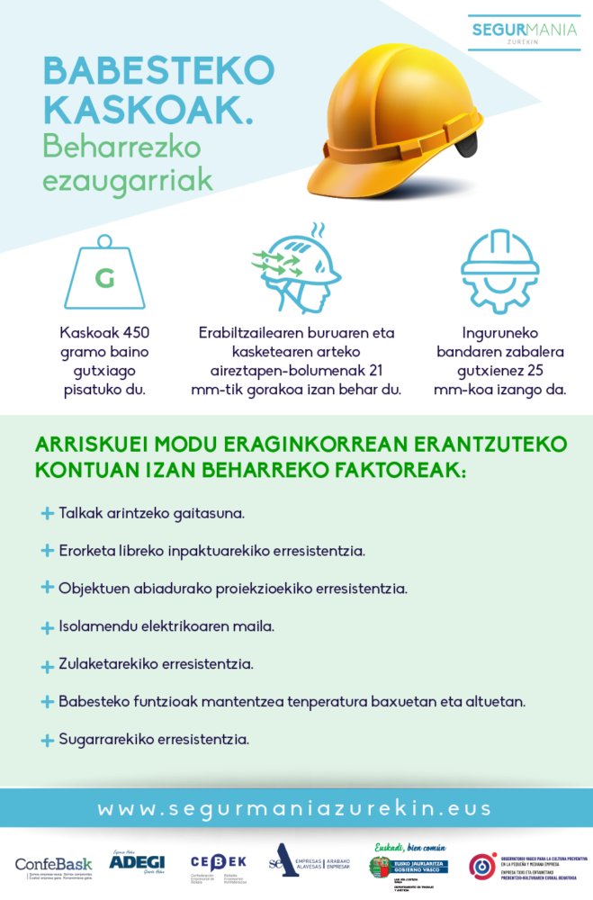 Babesteko kaskoak. Beharrezkoak dituzten ezaugarriak