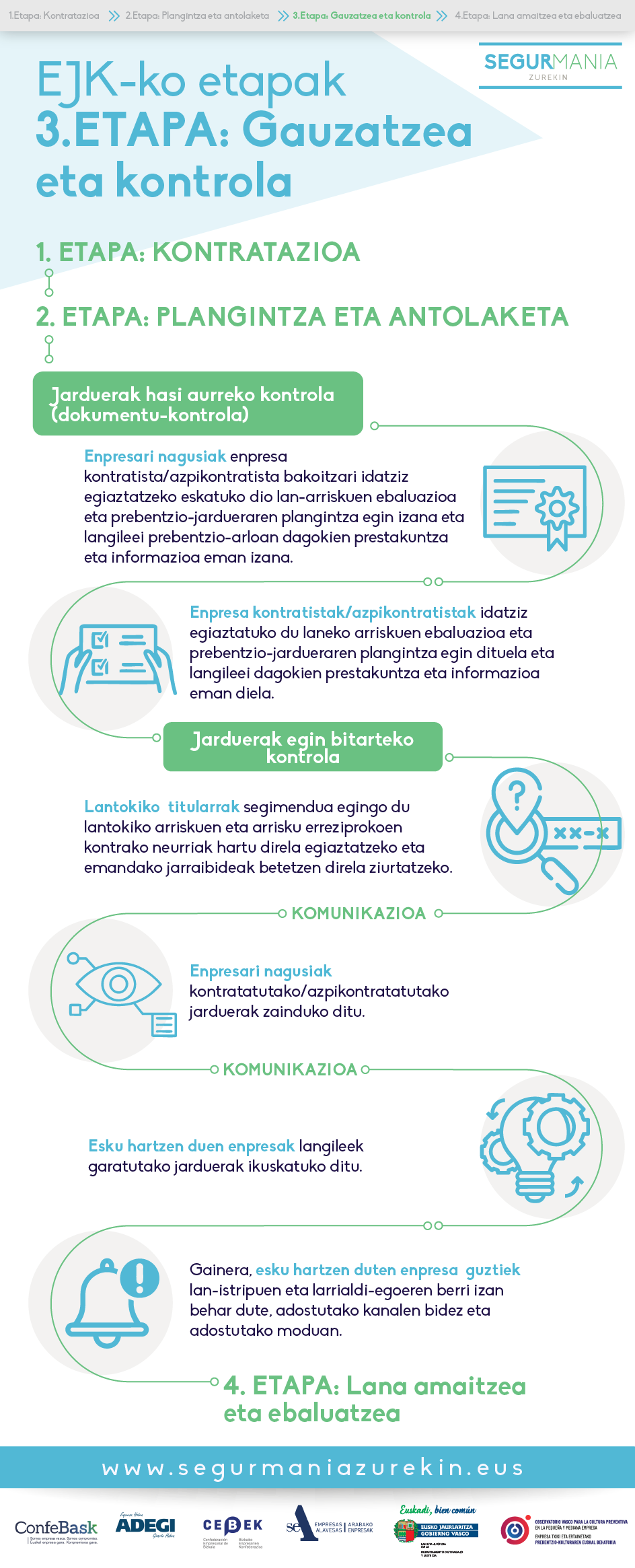 EJK eraginkorra izan dadin, ez da ekintza isolatu bakar gisa ulertu behar, baizik eta lau etapa dituen prozesu baten moduan. Etapa bakoitzaren funtsezko urratsak zehazten dituzten 4 infografia sortu ditugu. Gaur, hirugarrena argitaratuko dugu, gauzatze eta kontrolaren faseari buruzkoa.