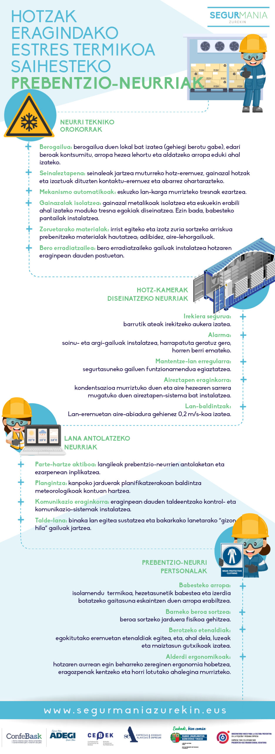 Prebentzio-neurriak ezartzea funtsezkoa da estres termikoa prebenitzeko eta hotza-baldintzetan lan egiten duten langileen osasuna eta segurtasuna bermatzeko. Jakin nahi duzu zer-nolako prebentzio-neurriak aplikatu behar diren? Infografia honetan kontatuko dizugu.