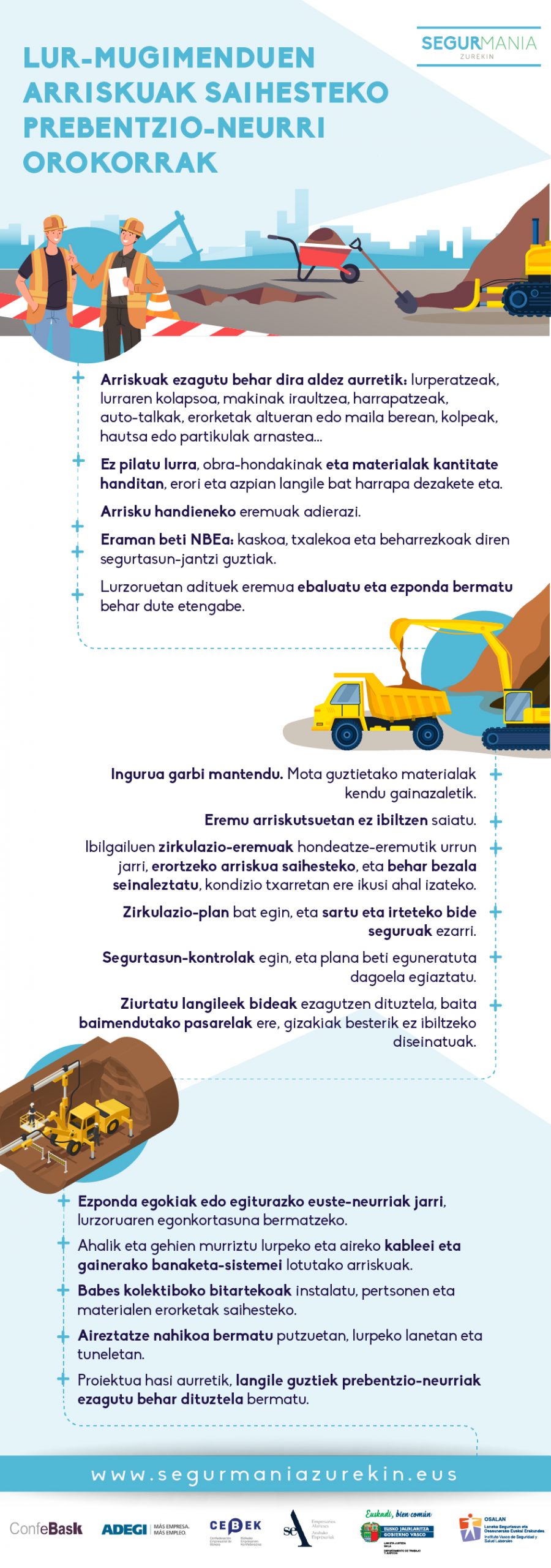 Jarduera espezializatu mota hauetan, esaterako lur mugimenduak, segurtasunaren prebentzio neurriak muturreraino eraman behar ditugu zeregin horiek betetzen dituzten langileen osasun eta ongizatea babeste aldera.