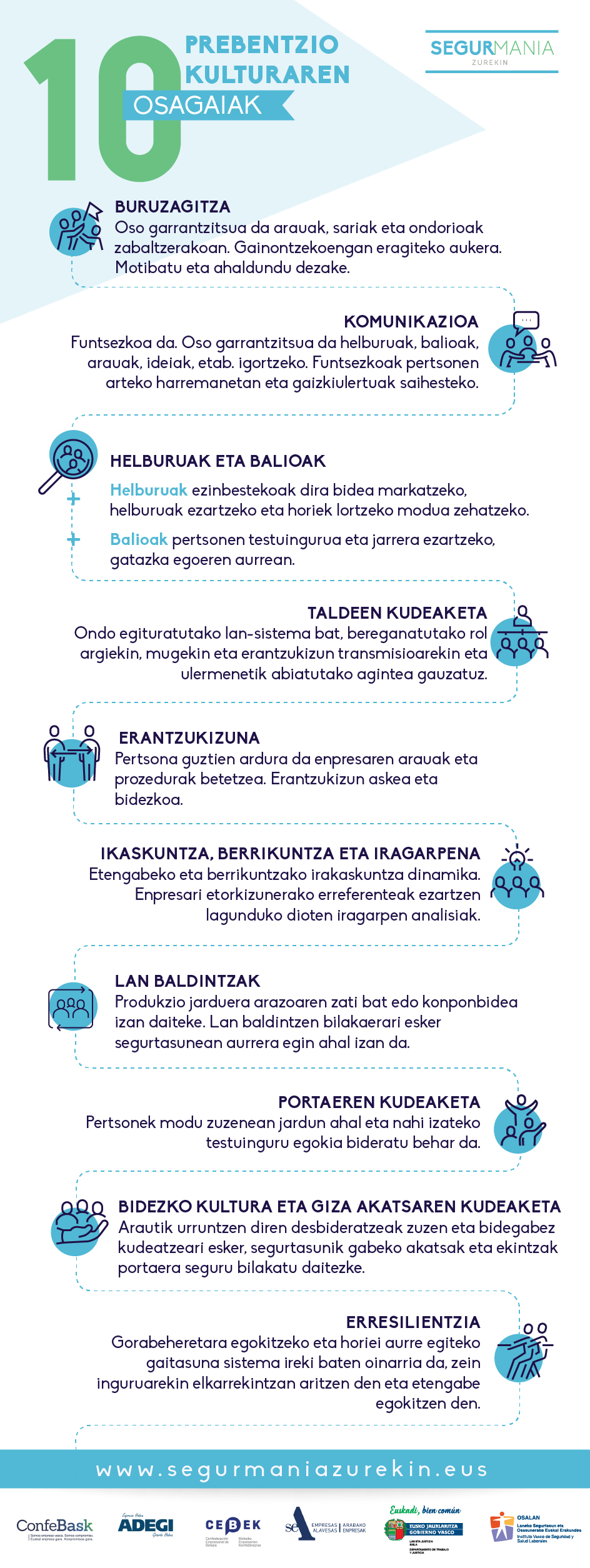 Enpresa baten prebentzio kultura kontzeptu aldakorra, dimentsio anitzekoa da eta etengabeko aldaketan dago. Elkarrekin estu lotuta dauden elementu desberdinak hartzen ditu barne. Elementu horiek elkarrekin aritzen dira eta elkarren arteko eragina sortzen dute. Aipatutako elementuak edo ezaugarriak landu edo garatu daitezke, prebentzio kultura hori hobetu ahal izateko.